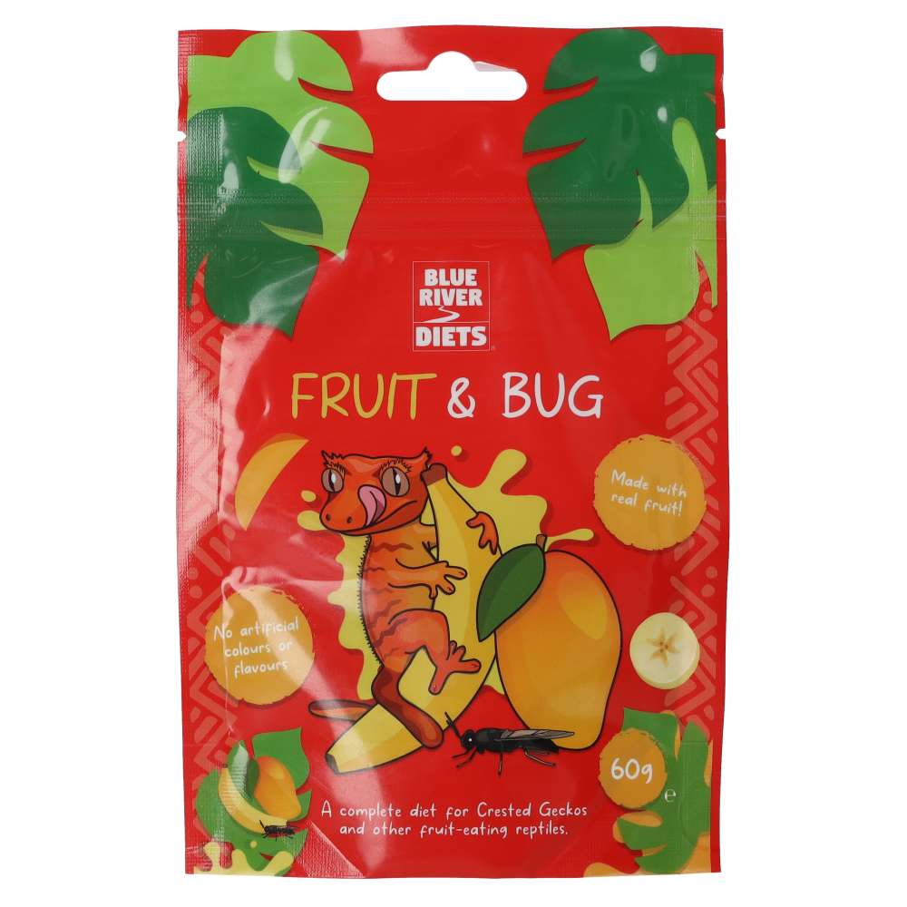 FRUIT AND BUG – Fantastically fragrant fruit, blended with bulk-building bugs. Packed with protein and fortified with vitamins and minerals to provide the ultimate complete crested gecko diet.